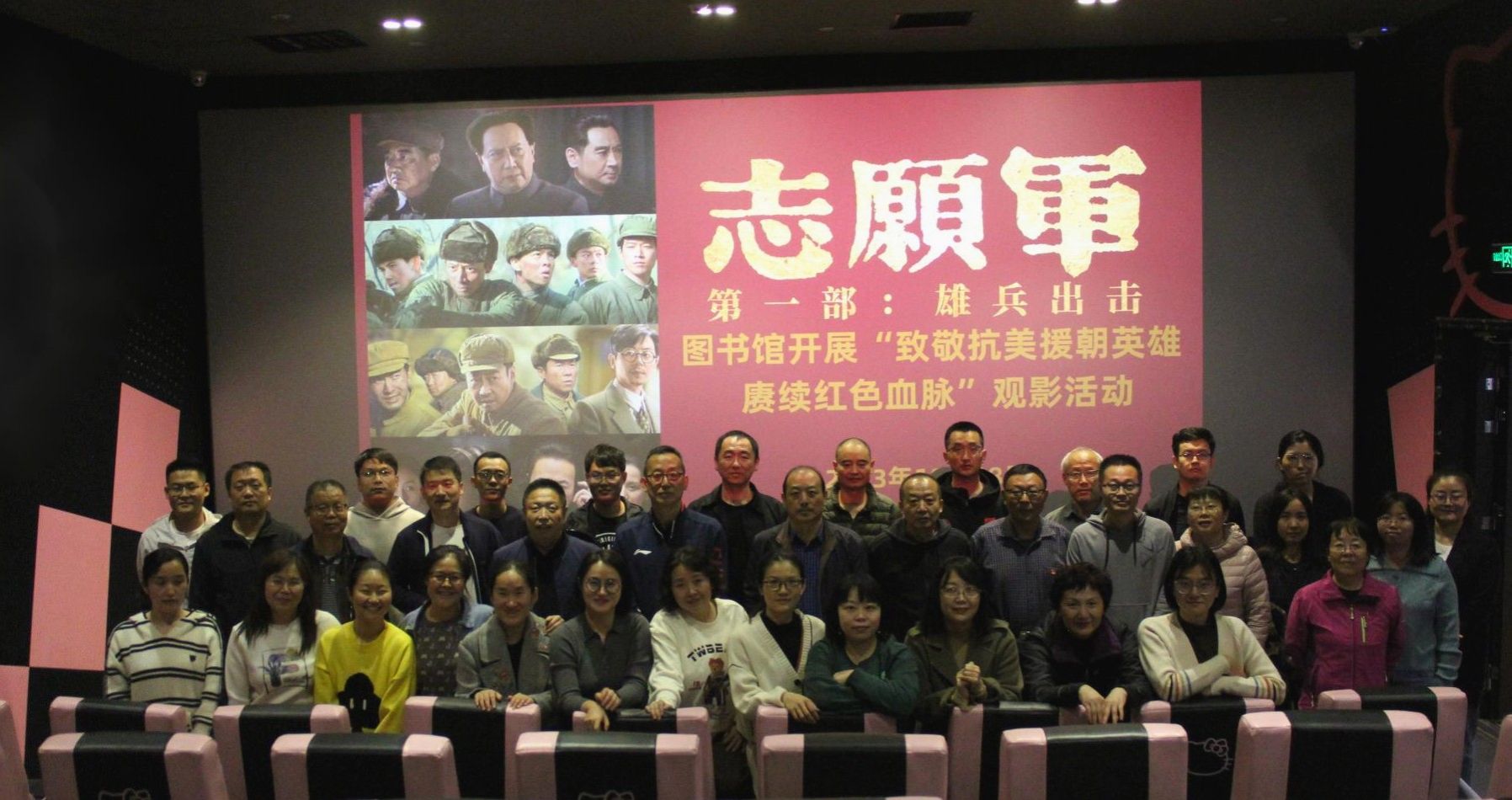 为深入学习贯彻习近平总书记关于弘扬爱国主义、传承红色文化的重要指示精神,更好地赓续红色血脉,传承奋斗精神,10月18日下午图书馆党总支开展“致敬抗美援朝英雄 赓续红色血脉”《志愿军:雄兵出击》观影活动,全体党员参加。