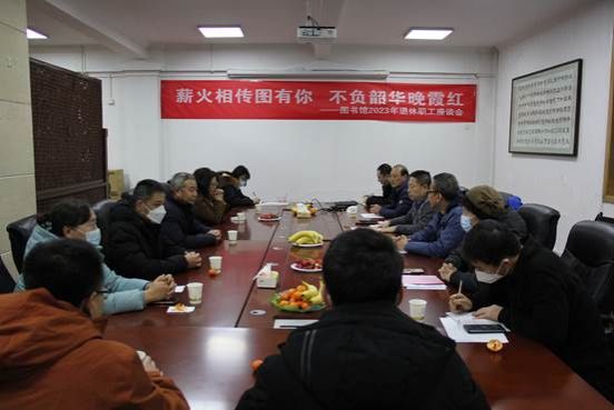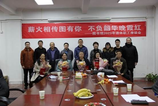 12月14日下午,图书馆2023年“薪火相传图有你 不负韶华晚霞红”退休职工荣退座谈会在南校区北院图书馆一楼研讨室举行。图书馆领导班子成员、办公室、流通阅览部、安全保障部负责人参加座谈,会议由党总支副书记吕英主持。