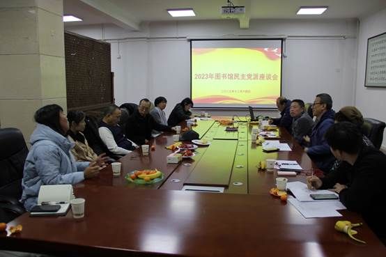 馆长赵文义对2023年图书馆的重点工作做了回顾,强调今年图书馆持续开展习近平新时代中国特色社会主义思想主题教育,贯彻落实党的二十大精神,大家要结合各自岗位实际,发挥党外知识分子作用,在推进图书馆智慧化建设,构建智慧服务平台等方面建言献策,推进统战工作与图书馆事业发展深度融合,并对各民主党派的支持与参与表示感谢。