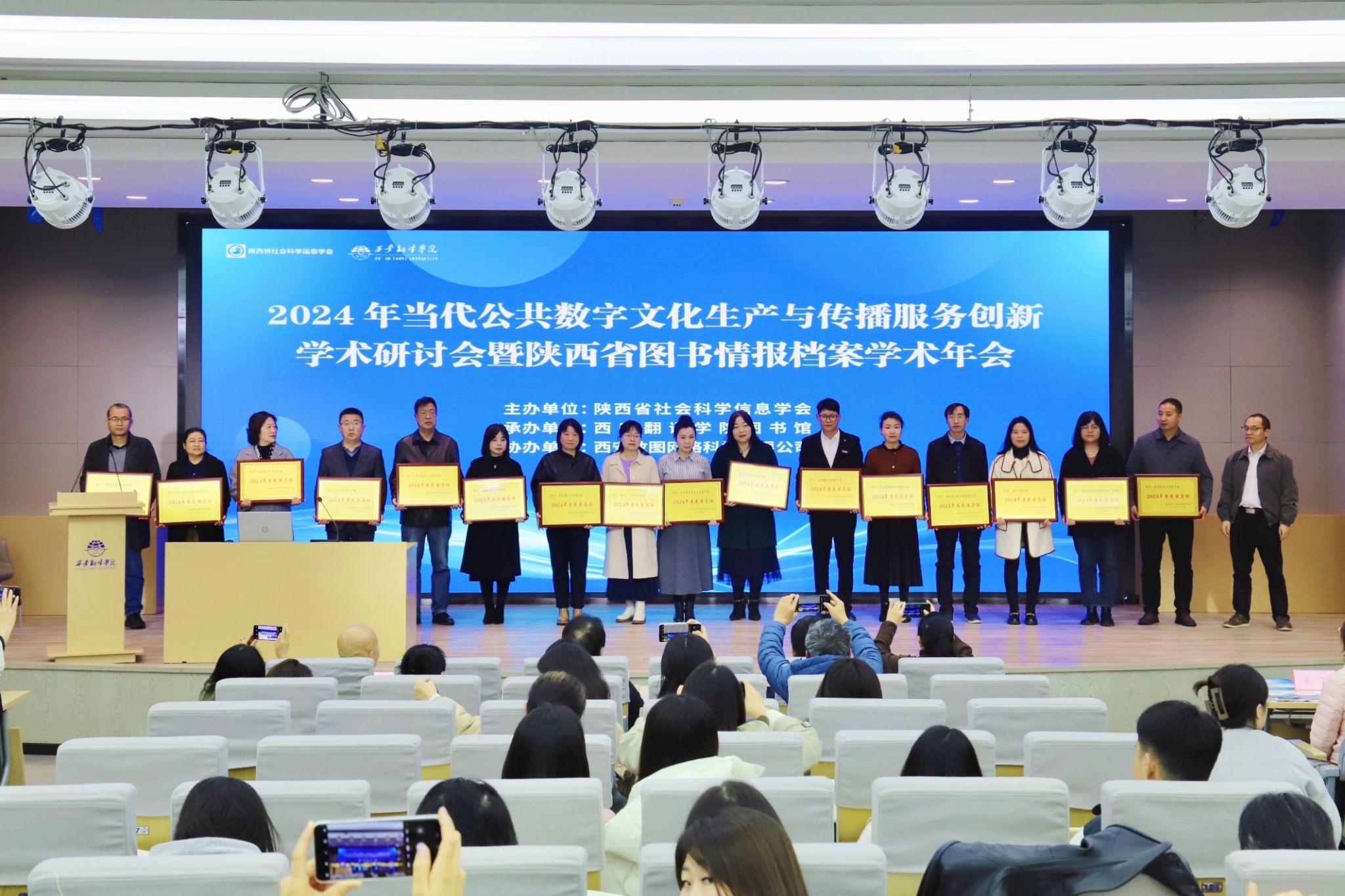 11月14日,由陕西省社会科学信息学会主办的2024年当代公共数字文化生产与传播服务创新学术研讨会暨陕西省图书情报档案学术年会在西安翻译学院召开。会议邀请了陕西省各高校图书馆馆长、特邀专家代表、学会理事单位代表、全国及省内有关图书情报档案机构的分管领导和学者代表参会。
