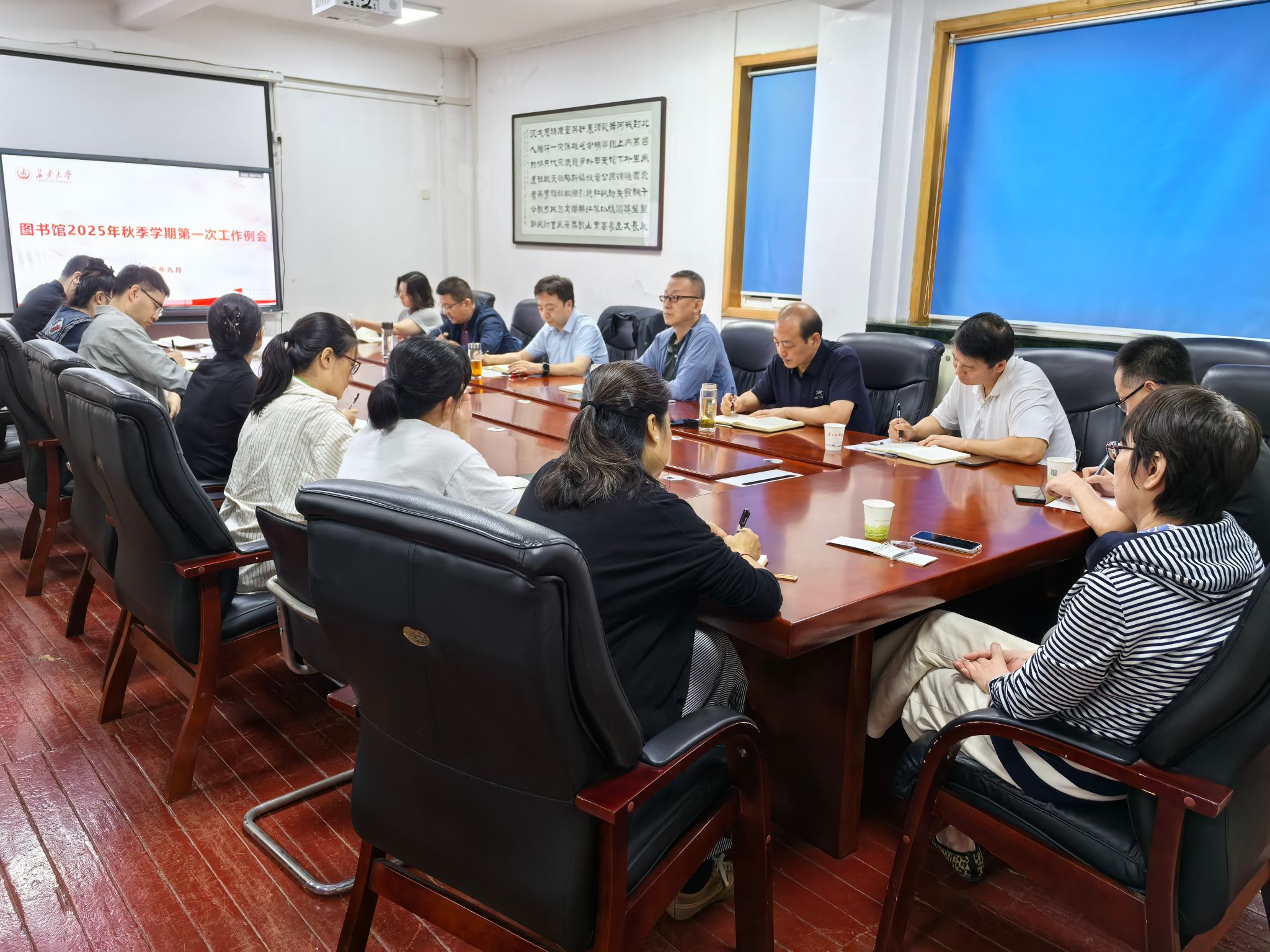 9月12日上午,图书馆在南校区一楼研讨室召开2025年秋季学期第一次工作例会,深入学习贯彻习近平新时代中国特色社会主义思想、全国教育大会和学校第一次党政工作例会精神,总结图书馆暑期重点工作落实情况,安排部署秋季学期重点工作。会议由馆长樊建强主持。