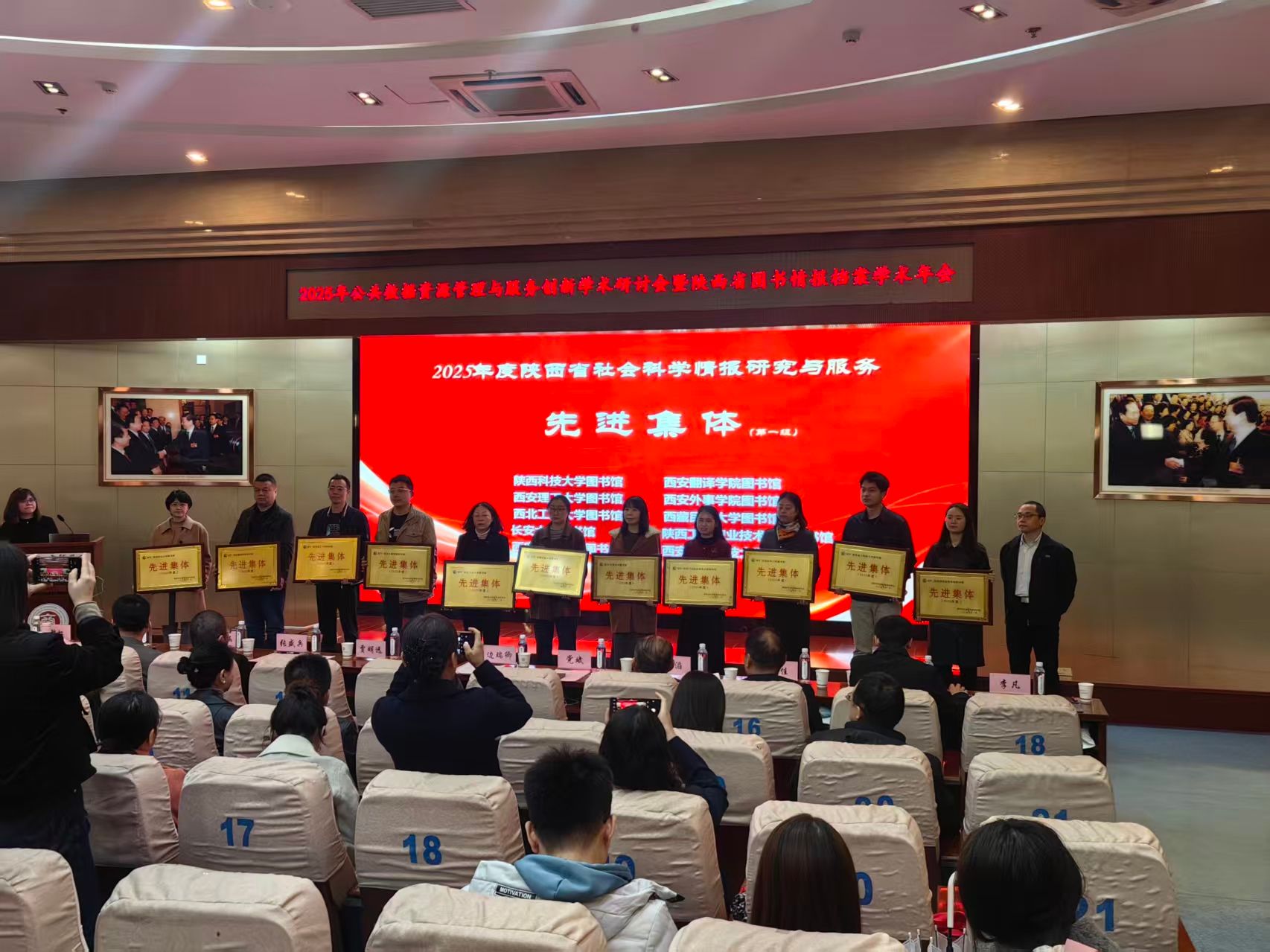11月7日,2025年公共数据资源管理与服务创新学术研讨会暨陕西省图书情报档案学术年会在陕西国际商贸学院图书馆报告厅举行。年会上对先进集体和先进工作者、优秀成果、优秀论文和优秀案例的获奖单位和个人进行了表彰并颁奖。长安大学图书馆荣获“2025年度陕西省社会科学情报研究与服务先进集体”荣誉称号,并获优秀工作奖1项。