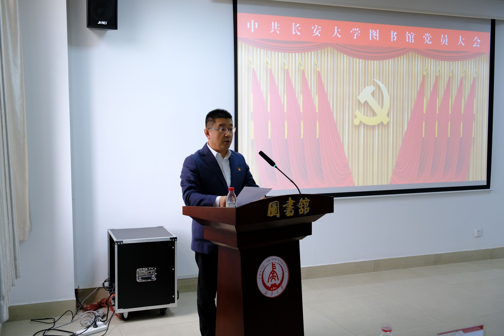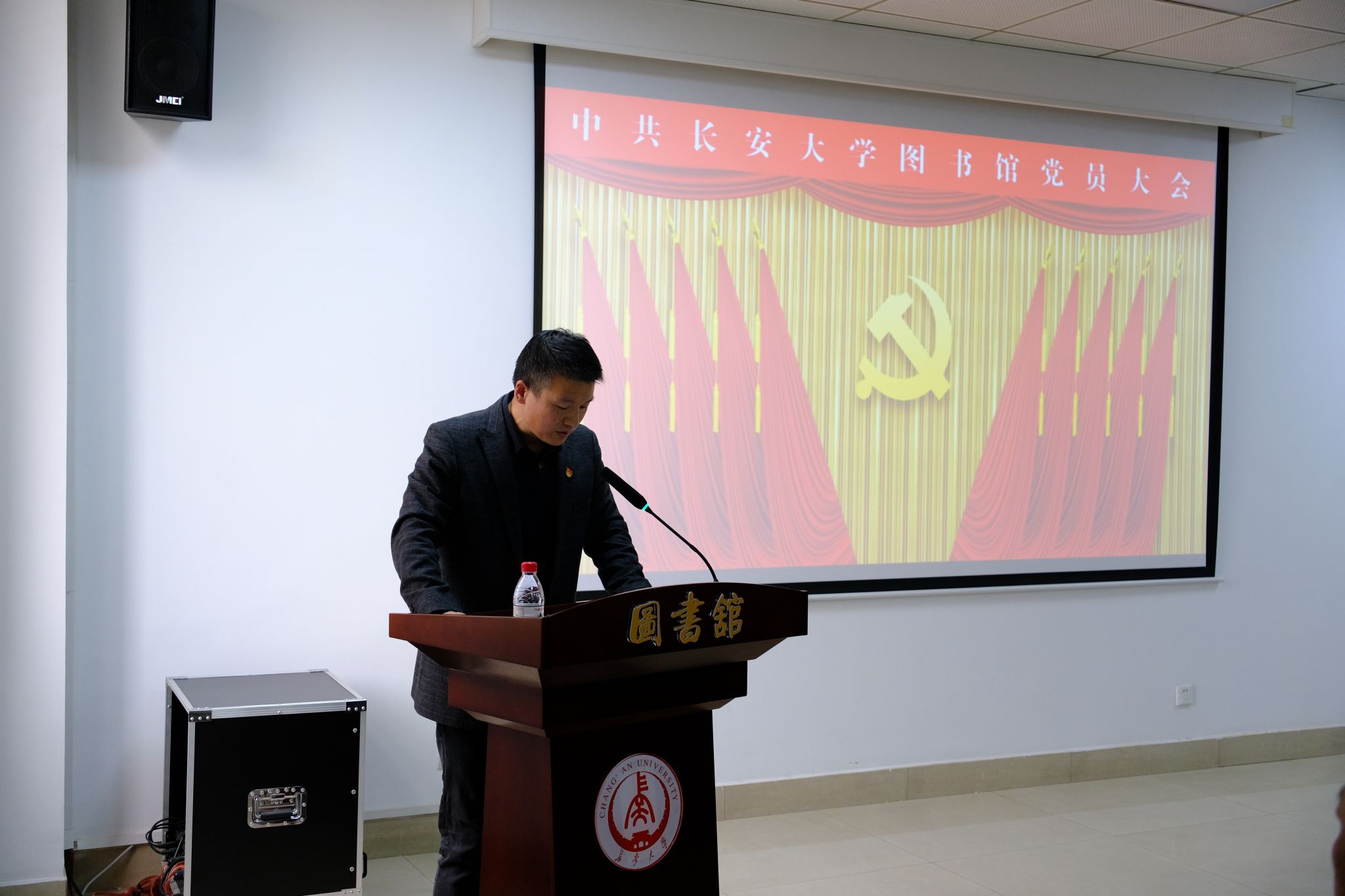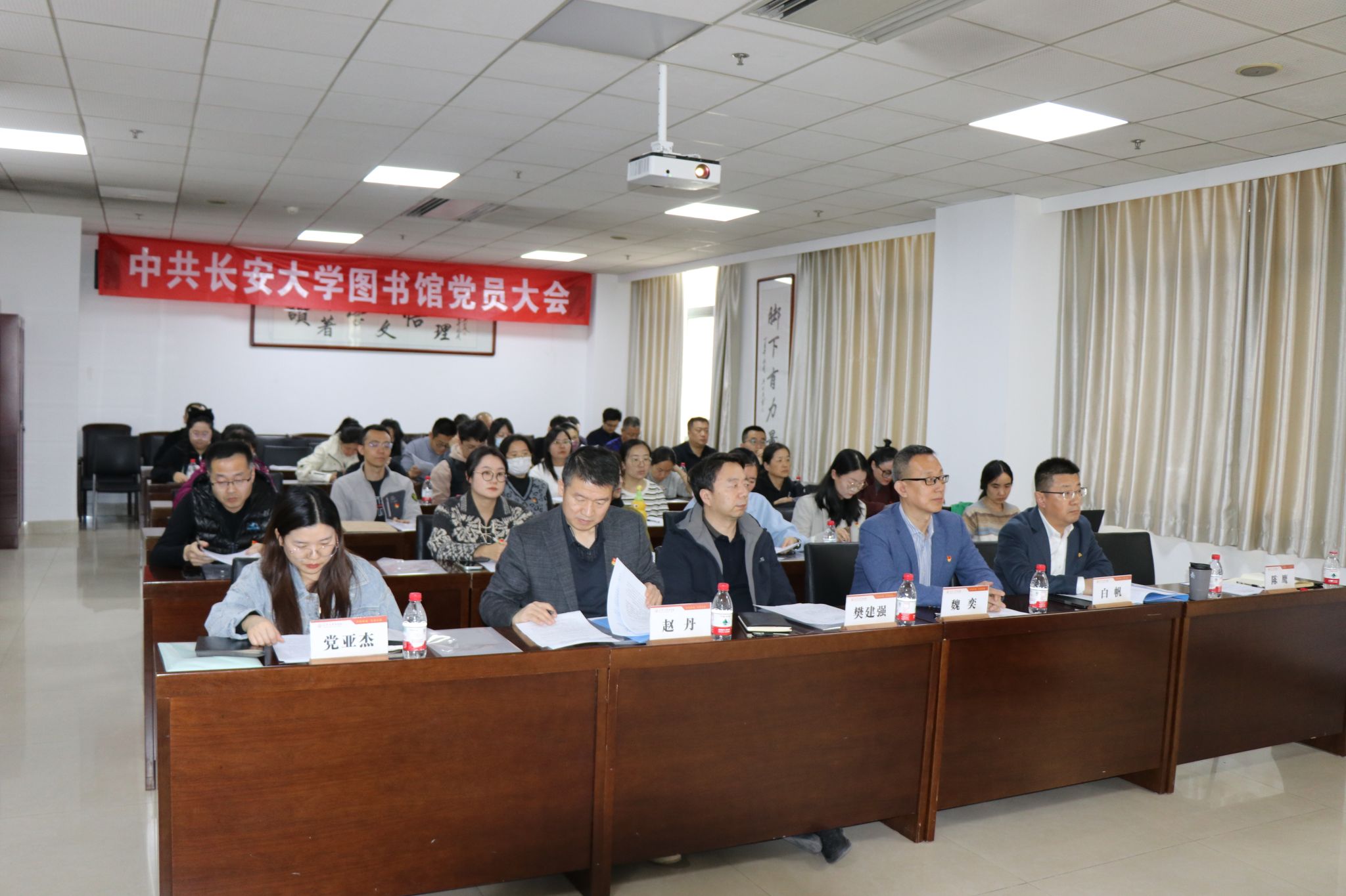 2025年12月2日下午,中国共产党长安大学图书馆党员大会于北校区图书馆402室隆重召开。馆长樊建强列席会议,组织部秘书党亚杰出席并指导会议召开。大会由图书馆党总支副书记陈鹰主持。