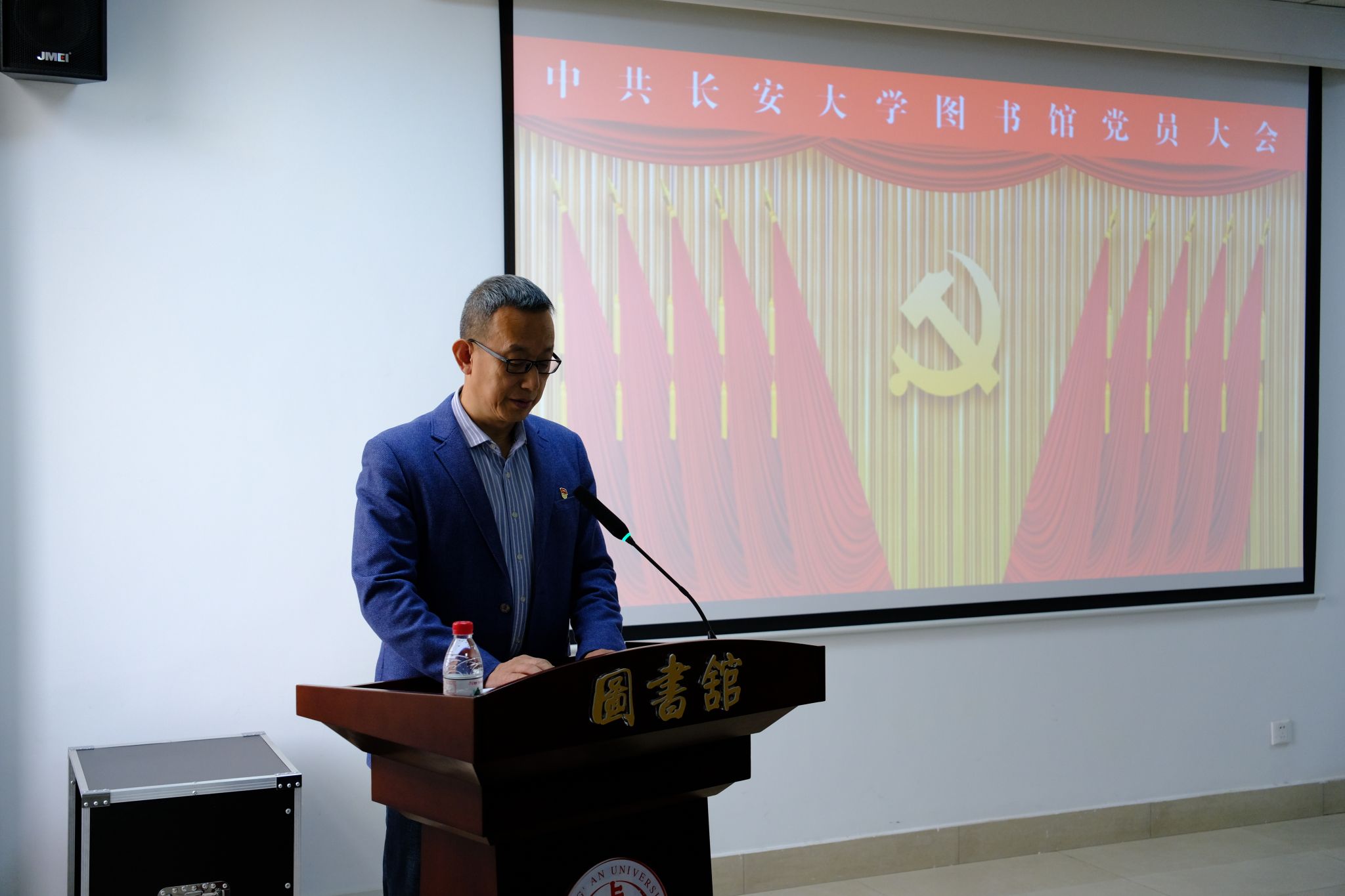 副馆长白帆宣读图书馆总支部委员会新一届委员候选人名单