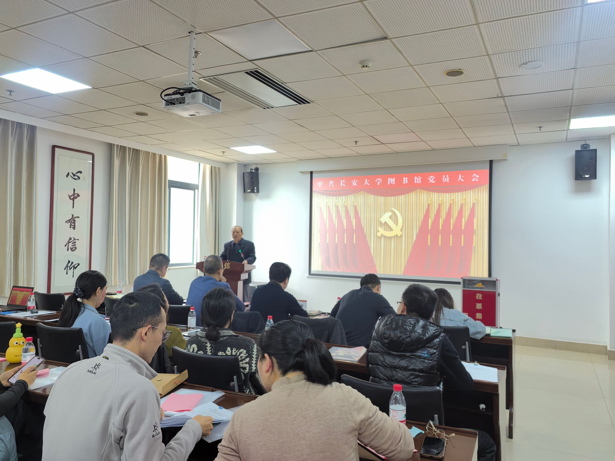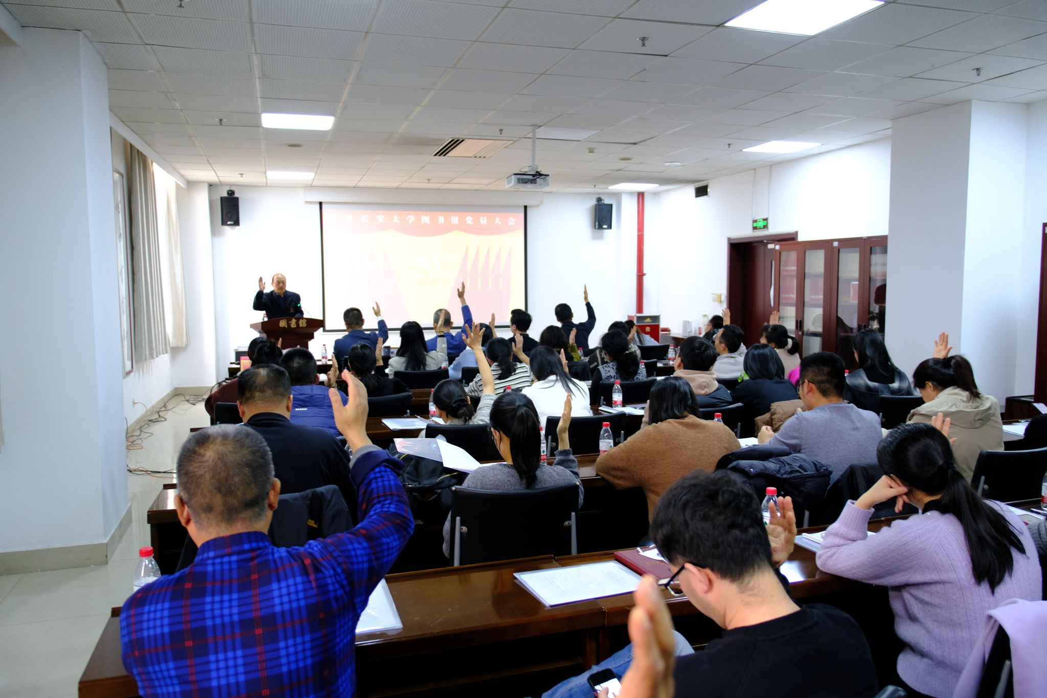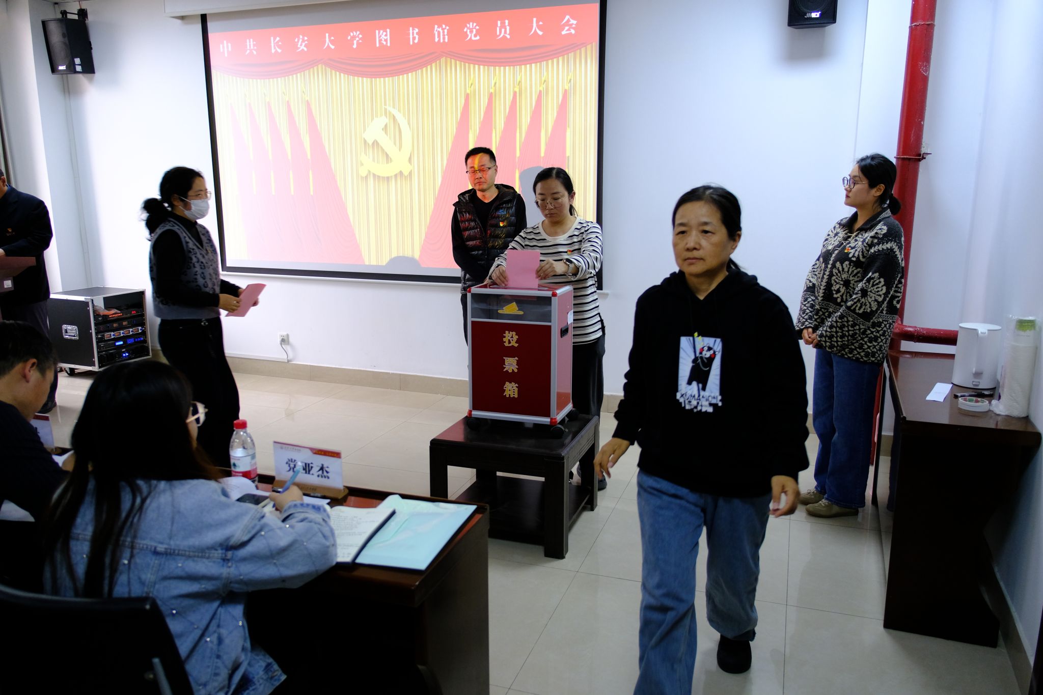 在总监票人和监票人的严格监督下,大会以无记名投票方式进行差额选举,顺利选举产生了由5名同志组成的中国共产党长安大学图书馆总支部新一届委员会。投票过程规范有序,选举结果合法有效,现场响起热烈掌声对新当选的委员表示祝贺。在《国际歌》中,中国共产党长安大学图书馆党员大会胜利闭幕。