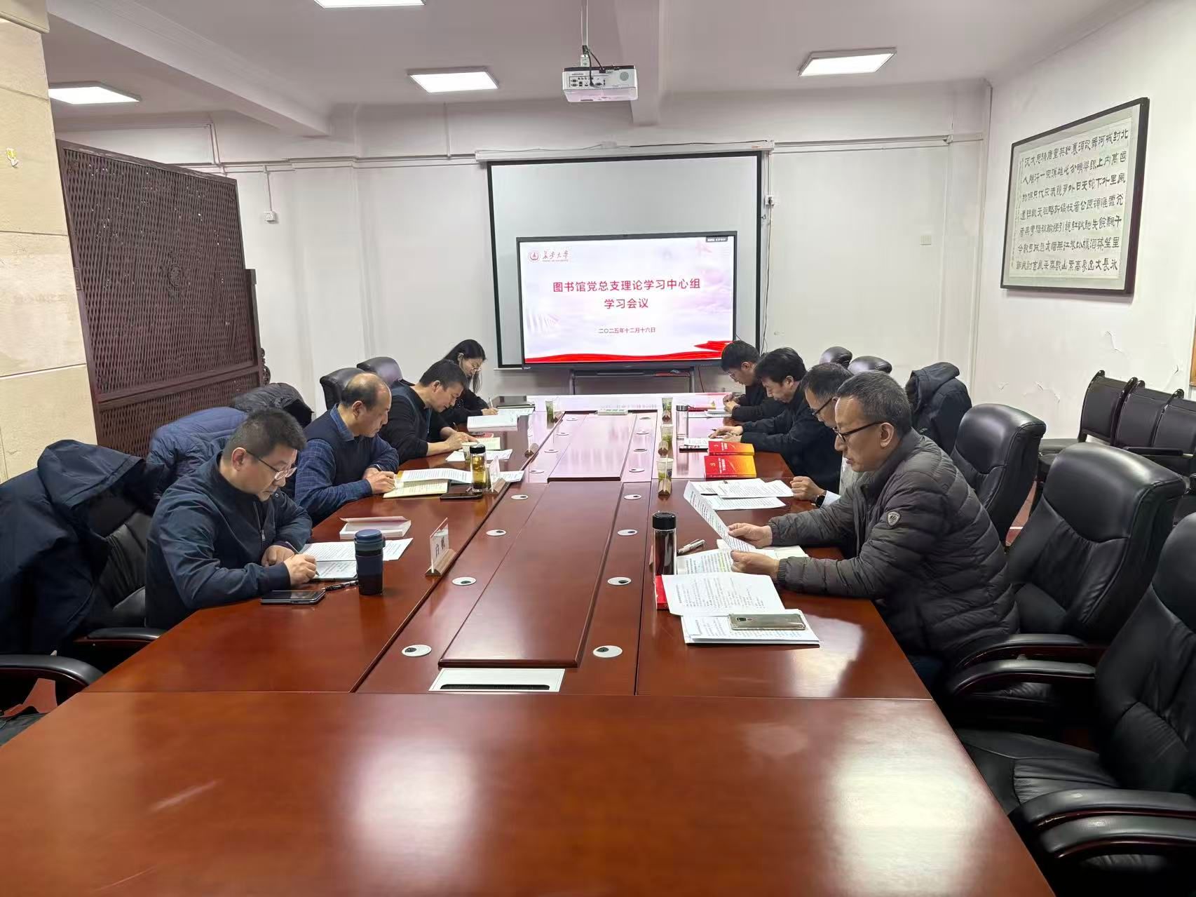 12月16日下午,图书馆在南校区北院图书馆一楼研讨室召开党总支理论学习中心组学习会议。学校2025年分党委、党总支理论学习中心组学习巡听旁听小组组长、校纪委副书记兼纪委办公室主任、监察处处长张小民,监察处秘书田弘长莅临指导检查。会议由图书馆党总支书记魏奕主持。