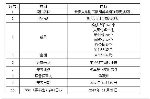 长安大学图书馆阅览桌椅维修更换项目验收表
