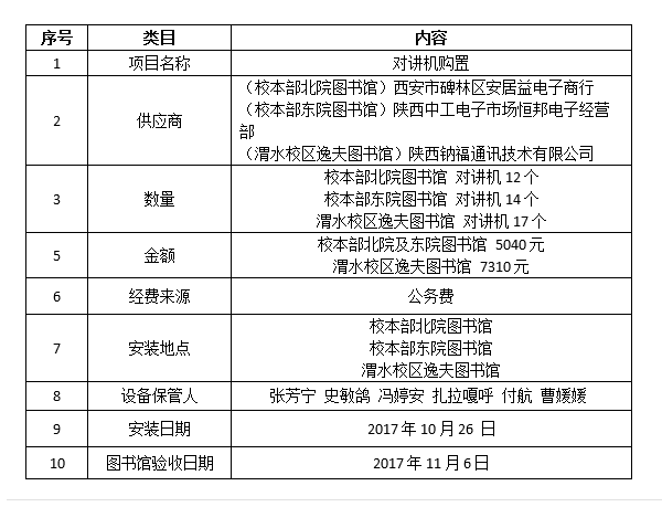 2017年图书馆对讲机购置验收表.docx