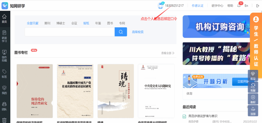 2、 绑定流程: 打开知网研学https://x.cnki.net/search